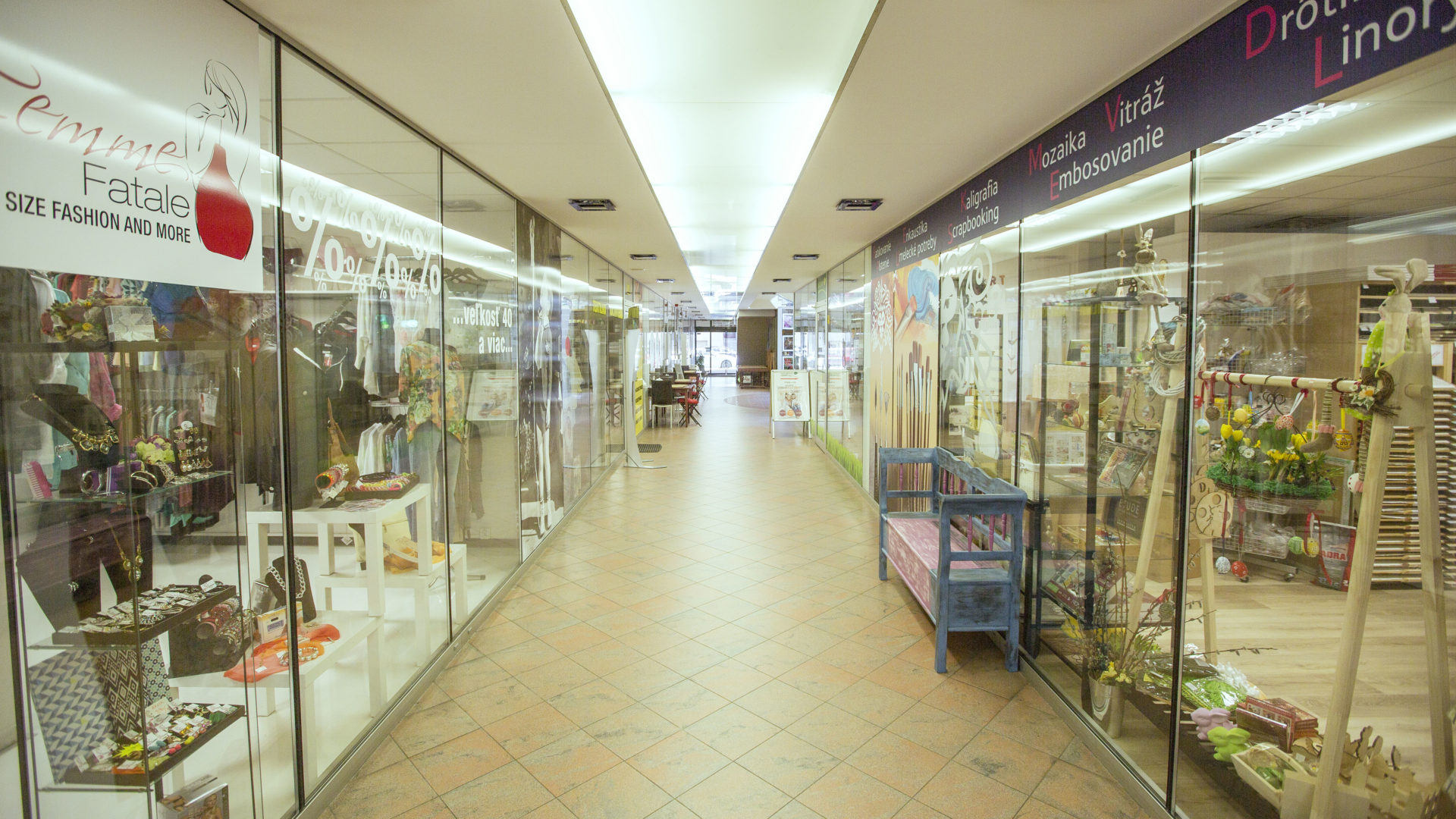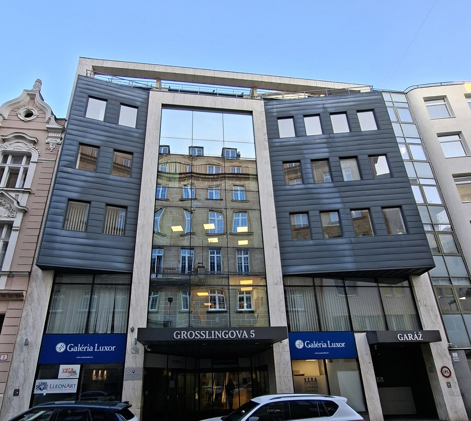 | Услуги в здании и поблизости | Поблизости: Универмаг «TESCO», супермаркет «Lidl», магазин здорового питания «YEME», магазин косметической продукции «dm drogerie», обувной магазин «Baťa», салон оптики, пешеходная зона |